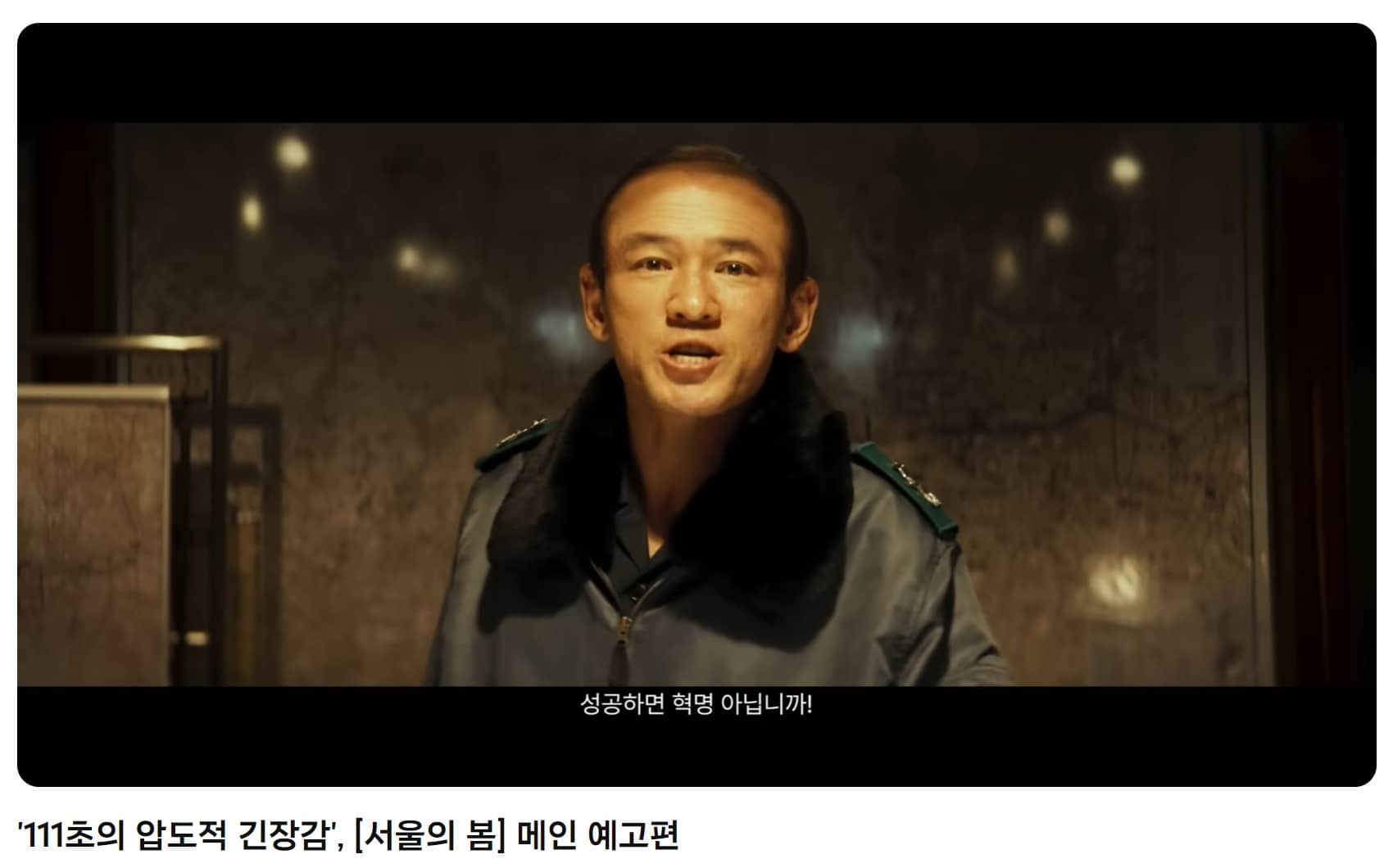 • 황정민 - 보안사령관 전두광 역, "실패하면 반역, 성공하면 혁명 아입니까! 이씨…"