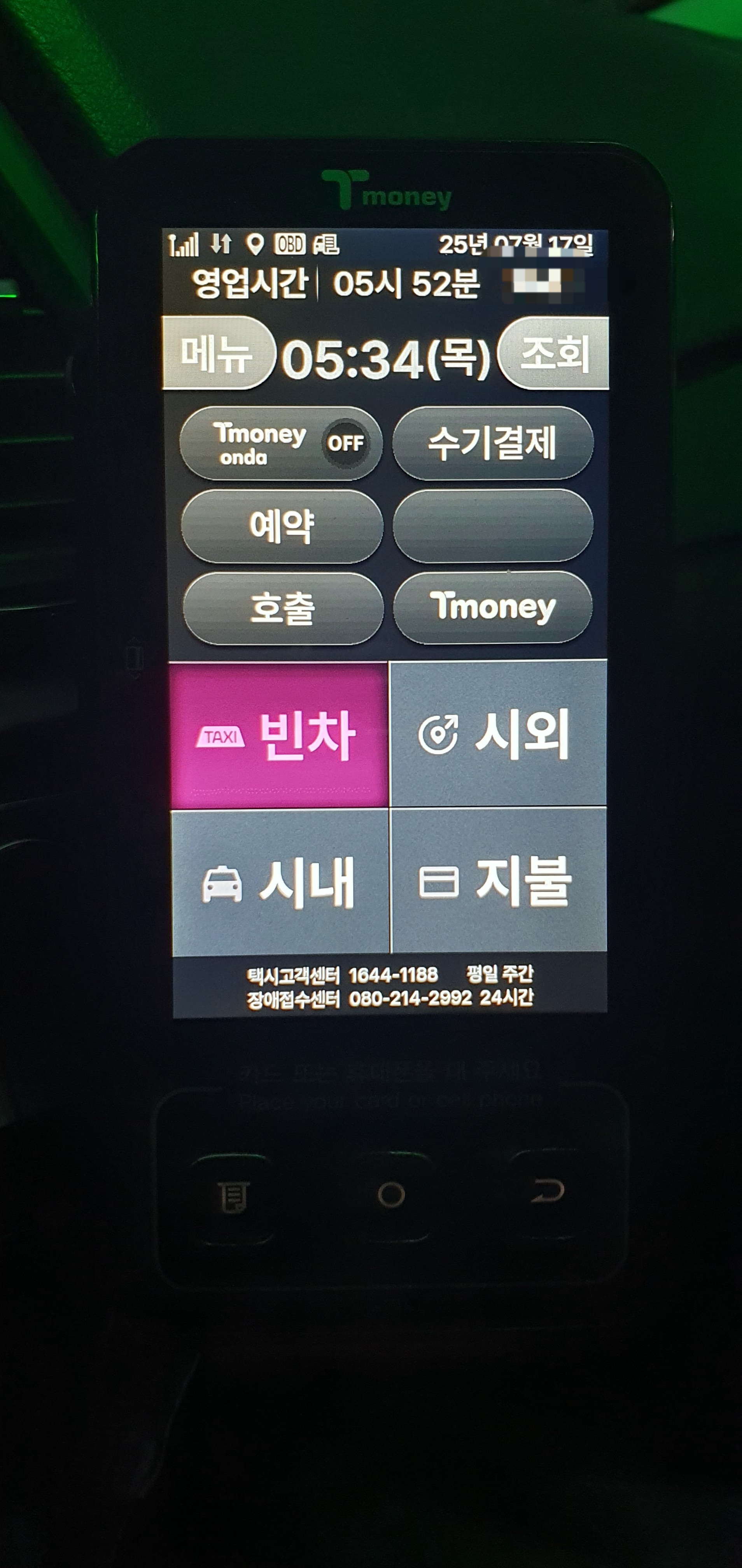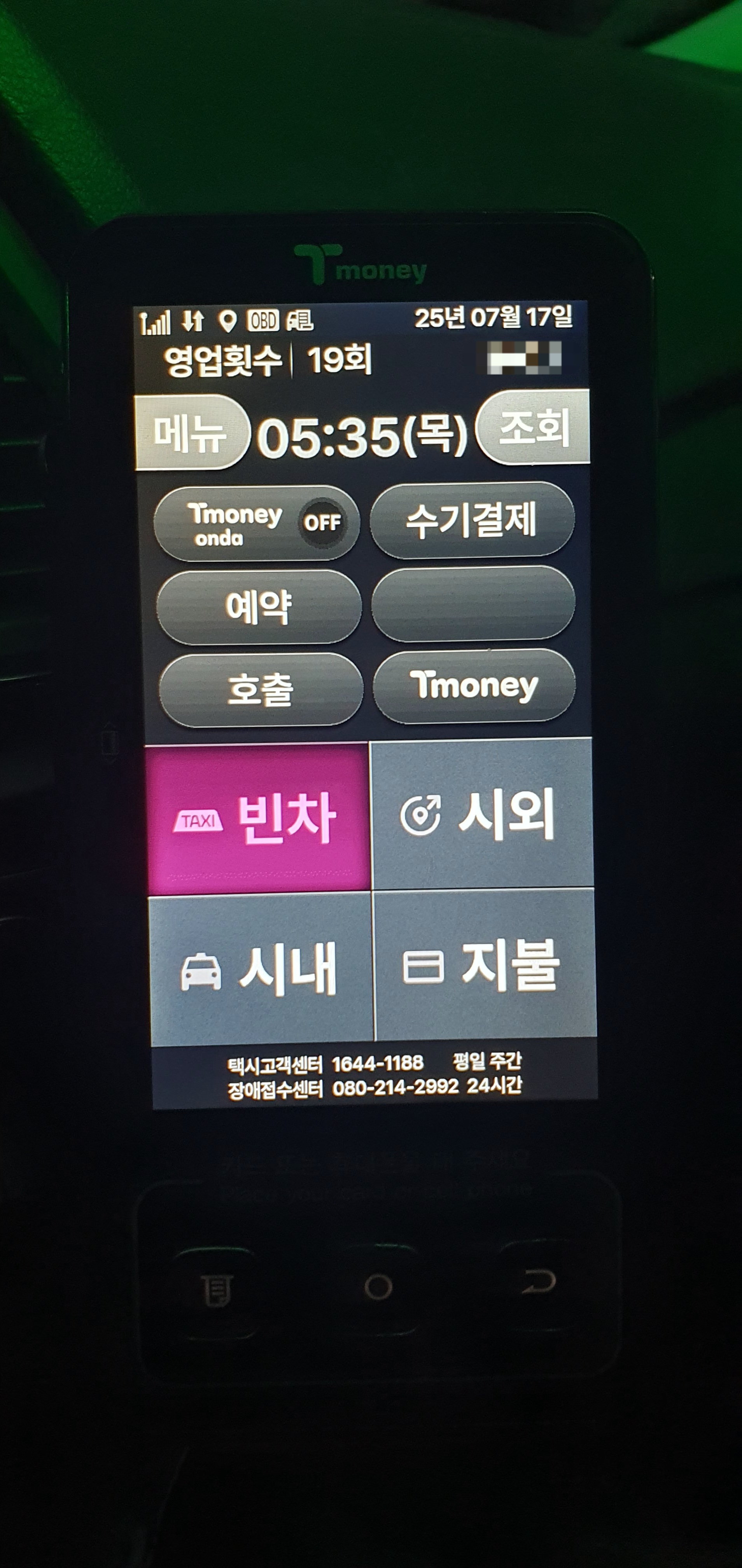 ㆍ오늘은 낮부터 비가 내려서 다른 택시 기사들이 대체로 많이 쉴 것으로 예상. 택시 회사도 기사들에게 빗길 안전운행 알림. 저녁 7시부터 운행 시작하자마자 콜 뜨고 새벽 1시까지 쉴 틈도 없이 연속콜이 뜸. 미리배차도 5번 연속으로 떠서 정말 정신없이 운행함. 시계외 별내에서 손님 내려주고 30분 휴식 후 다시 운행.