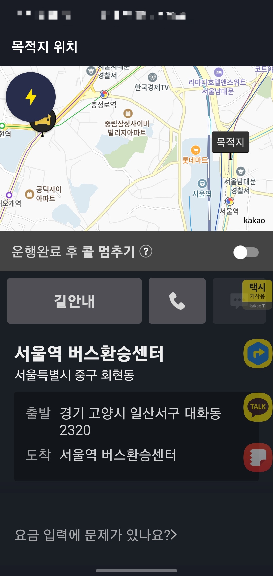ㆍ파주 손님 내려주고 빈차로 바로 서울로 갈까 잠시 고민하던 중에 고양에서 가수 블랙핑크 공연한다는 얘기 듣고 고양종합운동장까지 9km 달려가서 잠깐 대기하니 바로 카카오티~🔔 배차콜 뜸. 서울역~! 🚂